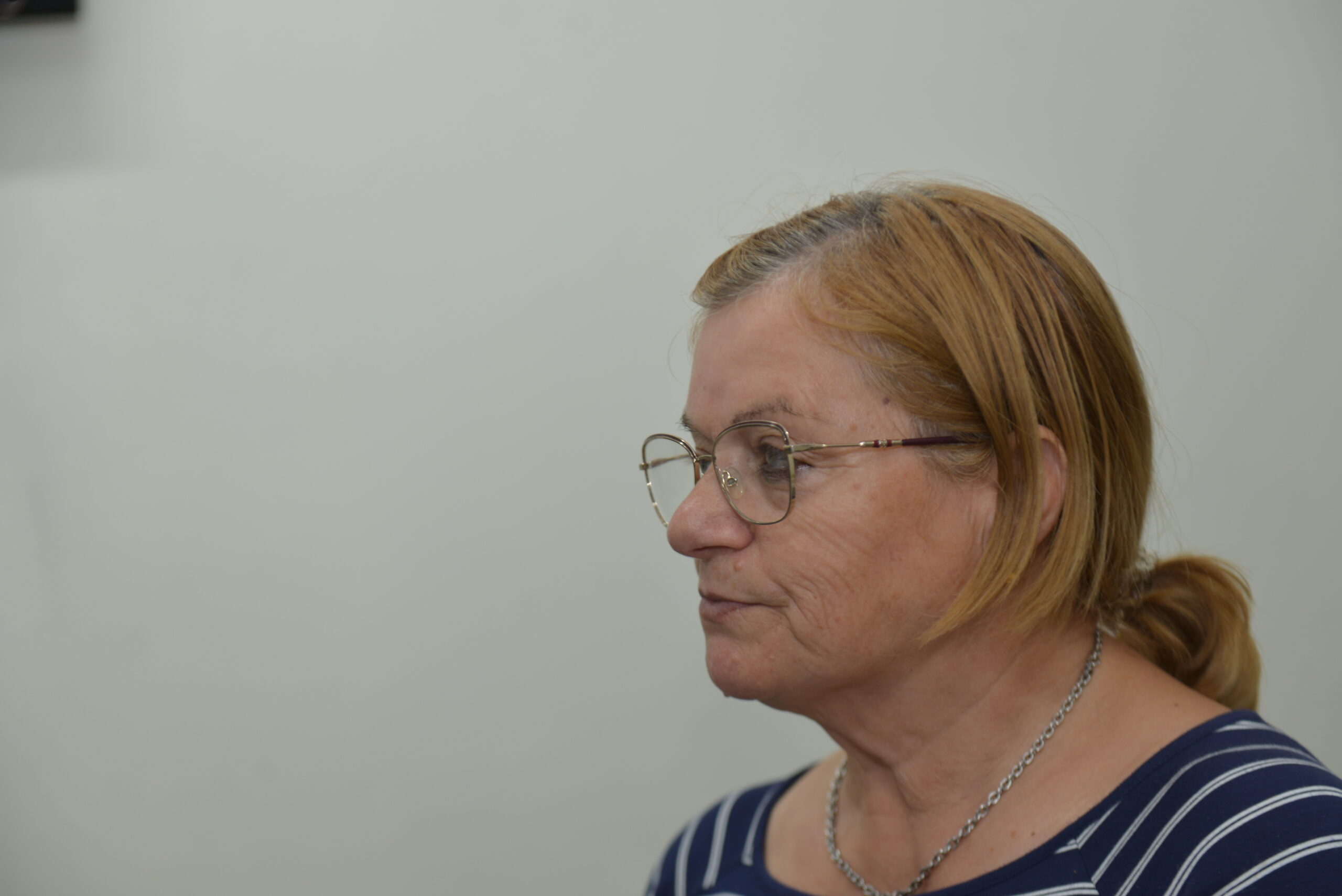 Coordenadora do Grupo de Jovens e logo, do nosso lado direiro, o Sr. António Monteiro desenhador e pintor de tdos os painéis em azulejo